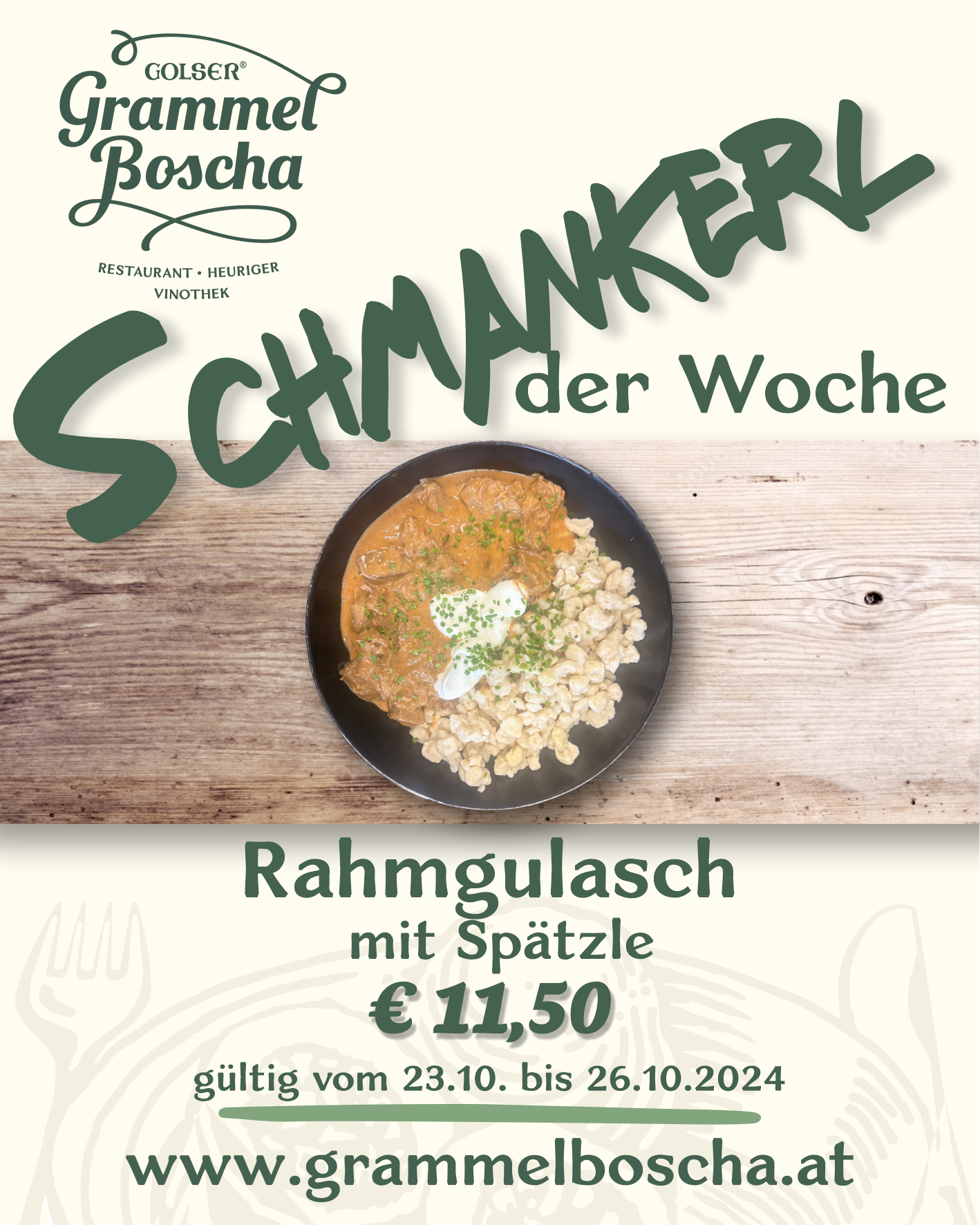Saisonale Schmankerln ergänzen unsere Karte und an den Wochenenden gibts hausgemachte Kuchen und Mehlspeisen!